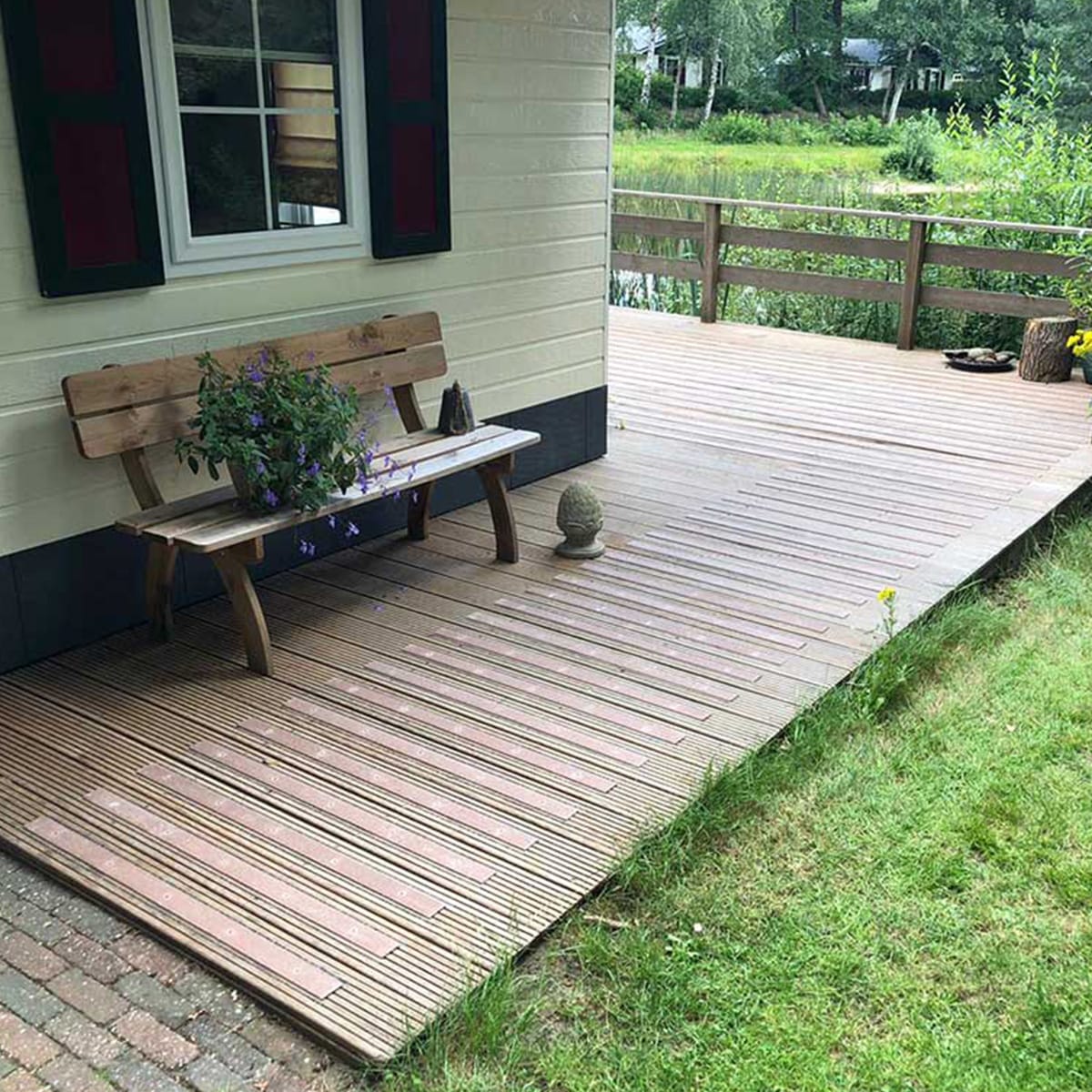 Houten vlonders, planken, trappen en loopbruggen vormen prachtige, natuurlijke elementen in tuinen en buitenruimten. Maar eenmaal nat door regen, vorst of algengroei kunnen ze verraderlijk glad worden. Dit kan leiden tot valpartijen met ernstige gevolgen. Onze hoogwaardige vlonderstrips bieden een betrouwbare oplossing en verhogen direct de veiligheid, zonder afbreuk te doen aan de uitstraling van het hout. Sterker nog, in de meeste gevallen is het een esthetische oppepper.