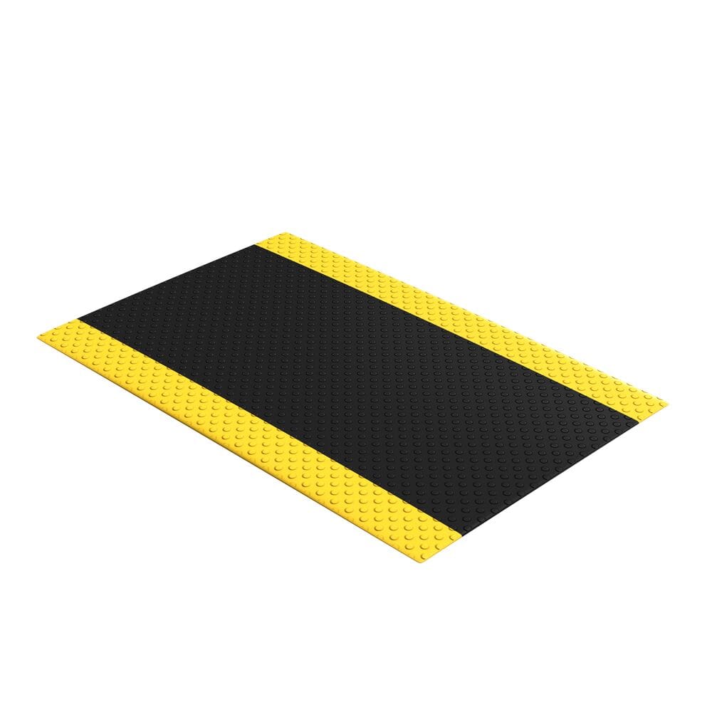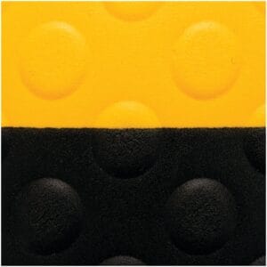 Uniek bubbelpatroon voor een goede grip. Uitzonderlijk comfort dankzij een nieuw geformuleerde veerkrachtige schuimvinylsamenstelling en 12,7 mm dik materiaal. Beschermende laag van exclusief Dyna-Shield™ verlengt de levensduur met 50% in vergelijking met normaal microcellulair vinyl. Leverbaar met gele waarschuwingsranden volgens OSHA code 1910-144. Rondom met afgedichte en afgeschuinde randen om struikelgevaar te voorkomen.