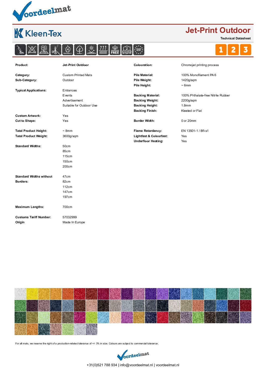 Praktische informatie: Zowel standaardmaten als matten vanaf de rol kunnen in afmeting licht afwijken. De bestelde lengtes worden machinaal afgesneden. Bij bestellingen vanaf de rol leveren wij standaard een kleine extra lengte, zodat u altijd voldoende materiaal ontvangt.