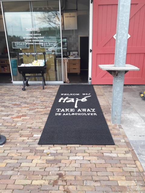 Let op: de Spaghetti logomat is niet krimpvrij en afhankelijk van weersomstandigheden kan de krimp variëren tussen 1 à 2 cm. Houd hier rekening mee als u de mat in een uitsparing plaatst.